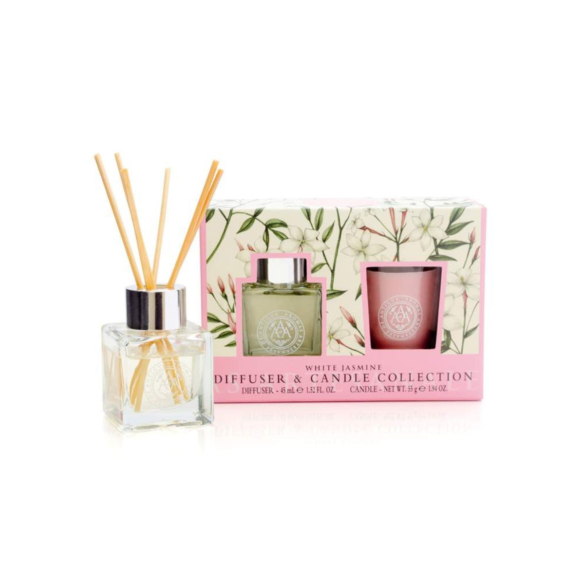 Incluí: Mini-mikado 45ml; Vela White Jasmine;
